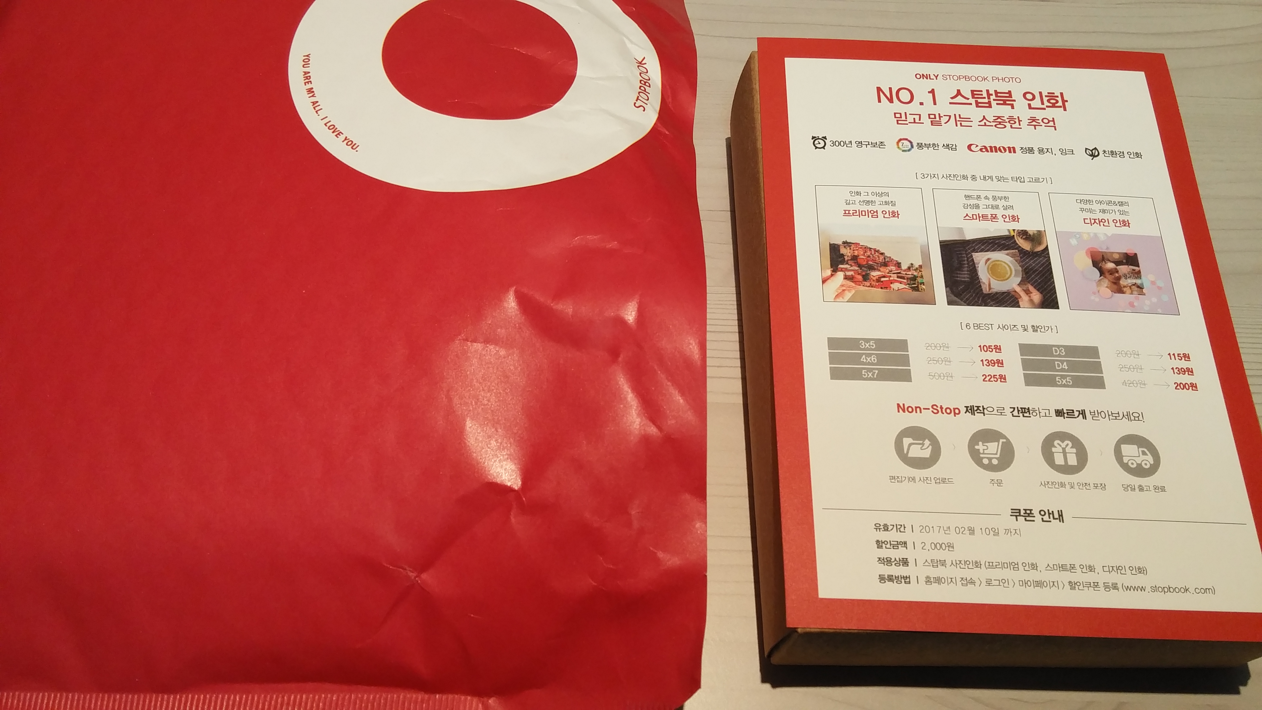 스탑북 사진 인화 2000원 권까지 함께 보내주셨네요.