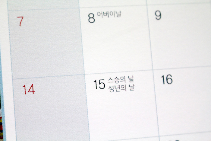 캘린더에 기본적으로 적혀져있는 열두달 기념일들의 모든 글자와 숫자들이 흐릿흐릿하게 인쇄된 점이었어요.