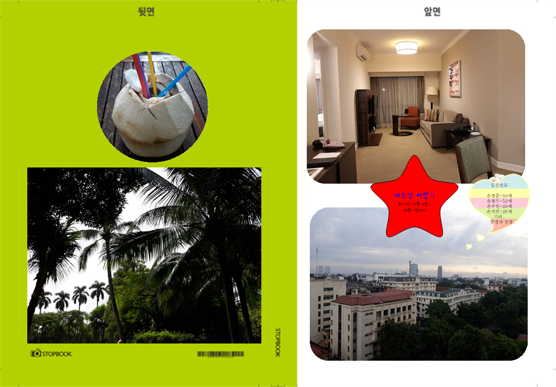 아들과 함께 힐링하기 위한 오키나와를 다녀왔다. 일본의 하와이 답게 날씨도 따듯하고 신선한 공기도 너무 좋았다. 더구나 스테이크는 맛이 좋았다. 이런 추억을 남길 수 있는 스타북 이곳을 알고 벌써 3번째 제작을 했다. 이제도 계속 제작하려한다. 점점 저의 편집 기술은 좋아 지는 것 같다. 처음은 편집대행을 할까 했는데 편집대행은 나의 추억을 대변하기엔 어려움이 있을것 같아 혼자 해보다보니 이제 사용방법이 많이 익숙해지면서 제작 기간도 단축되기도 한다. 제본 잘 해주고 쿠폰을 사용하여 처음보다 저렴하게 제작했습니다. 감사합니다.