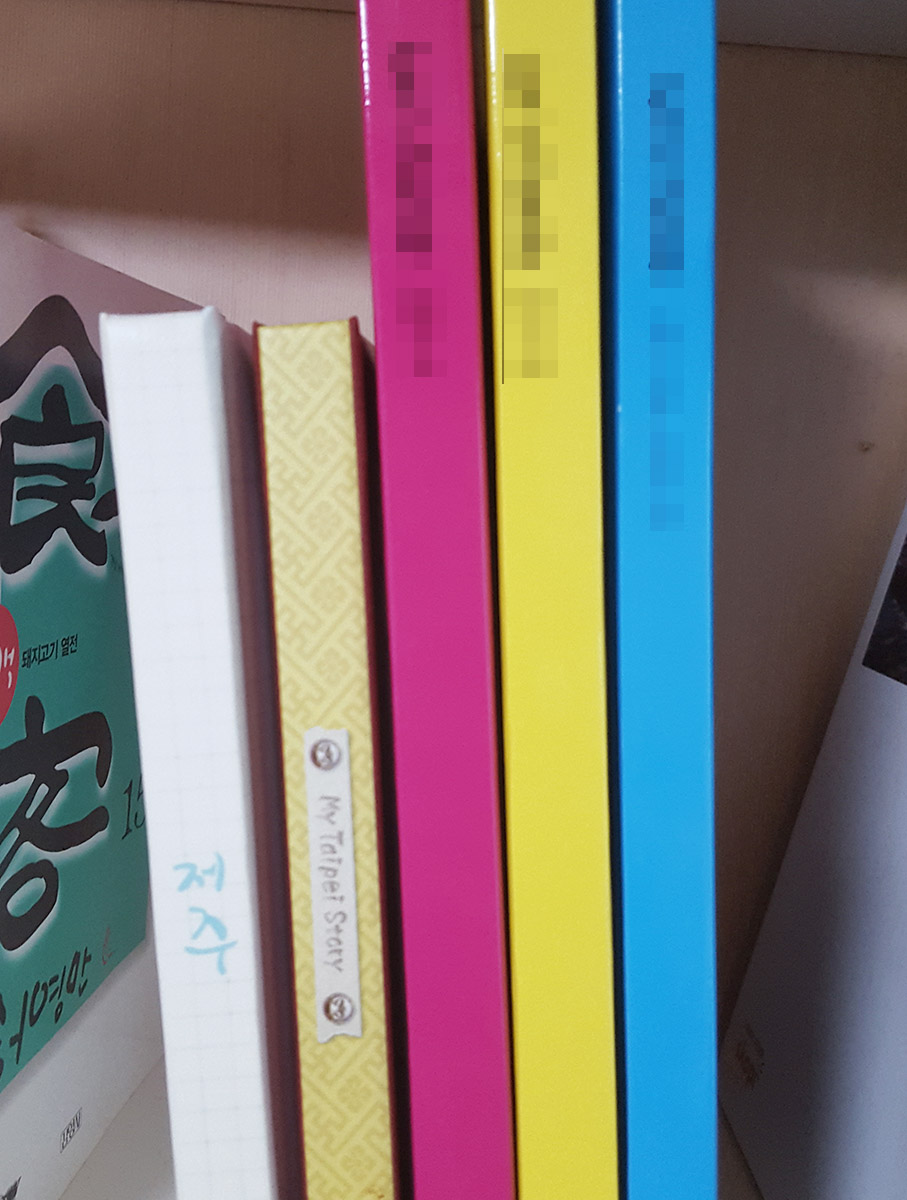 책장에 스탑북에서 만든 앨범이 점점 쌓여가는 모습이 흐뭇하네요~